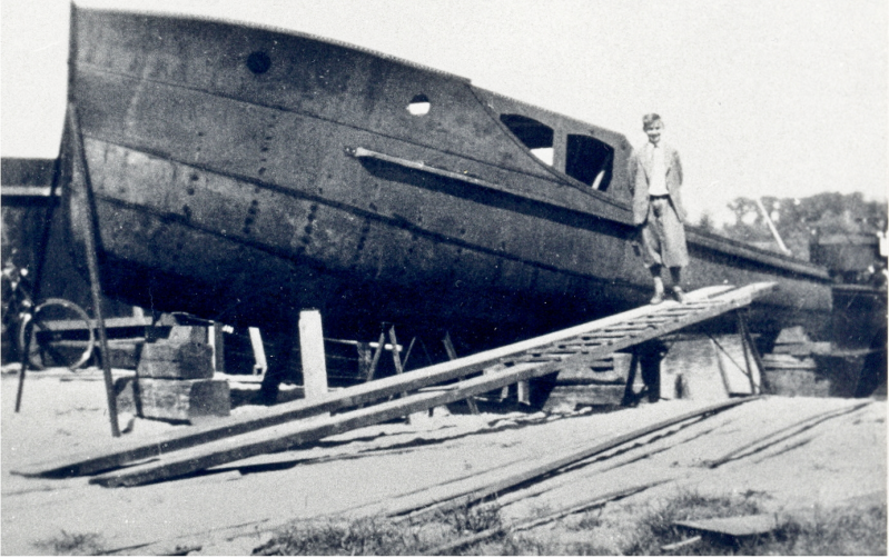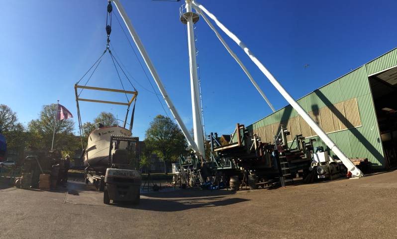 Santa Maria uit het water bij Jachtwerf De Haas op de Binckhorst 1983