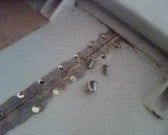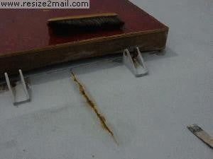 Roest in de naden naast de geklonken strippen doordat er water in blijft staan. Oplossing klinknagels uitboren, alles roestvrij maken en weer in elkaar klinken