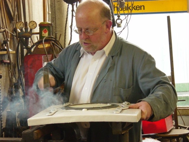Weer netjes een elipsvormige strip aan de plaat geklonken, met behulp van de fam. Heppener