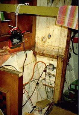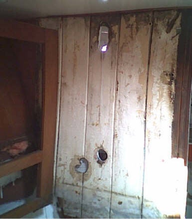 Heftige plek door lekkage op plek raam stuurhut